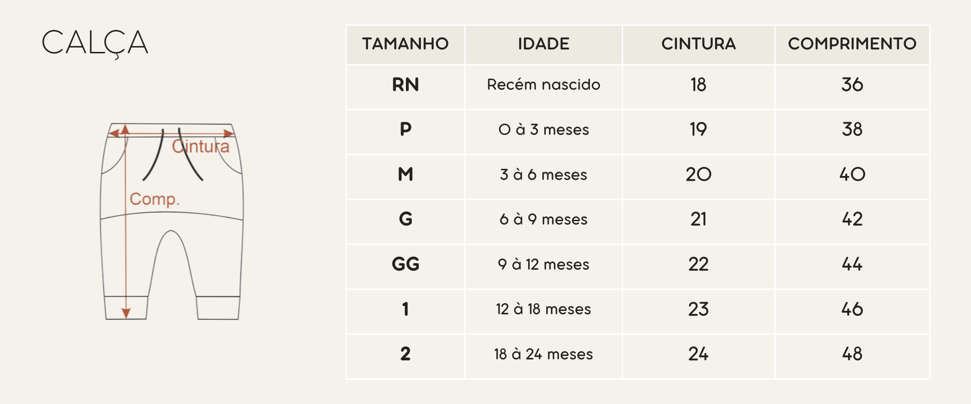 Conjunto infantil, composto por body e calça liso, confeccionados em suedine 100% algodão sustentável, com gramatura leve, toque macio e muito confortável. Modelagem com as medidas padrões para o mercado brasileiro. Tabela de medidas disponível junto com as fotos do produto. O Body oferece fechamento entre pernas com dois botões de pressão, ombros transpassados estilo gola americana, para facilitar na hora de vestir ou trocar o bebê. Tem silk interno de tamanho e informações do produto sem toque, para não irritar a pele do bebê. A calça possui elástico na cintura com cadarço funcional para regulagem, além de silk interno de informações e punho nas pernas para maior conforto.